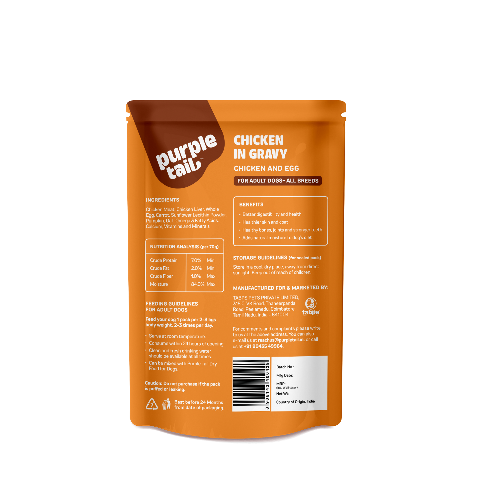 CHICKEN IN CHUNKS WITH GRAVY FOR ADULT DOGS TOTAL 350Grm (5Pcs * 70Grm Each)